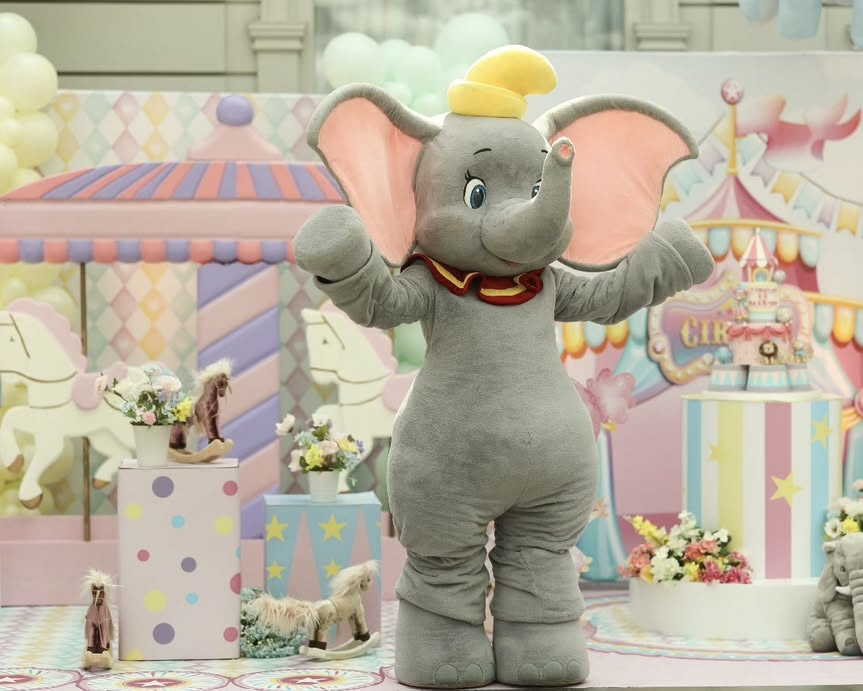 Nežna in čarobna maskota Dumbo s svojimi velikimi ušesi razveseli najmlajše s svojo prisrčnostjo in toplino. Odlična izbira za dogodke, kjer želite dodati pravljičen pridih.