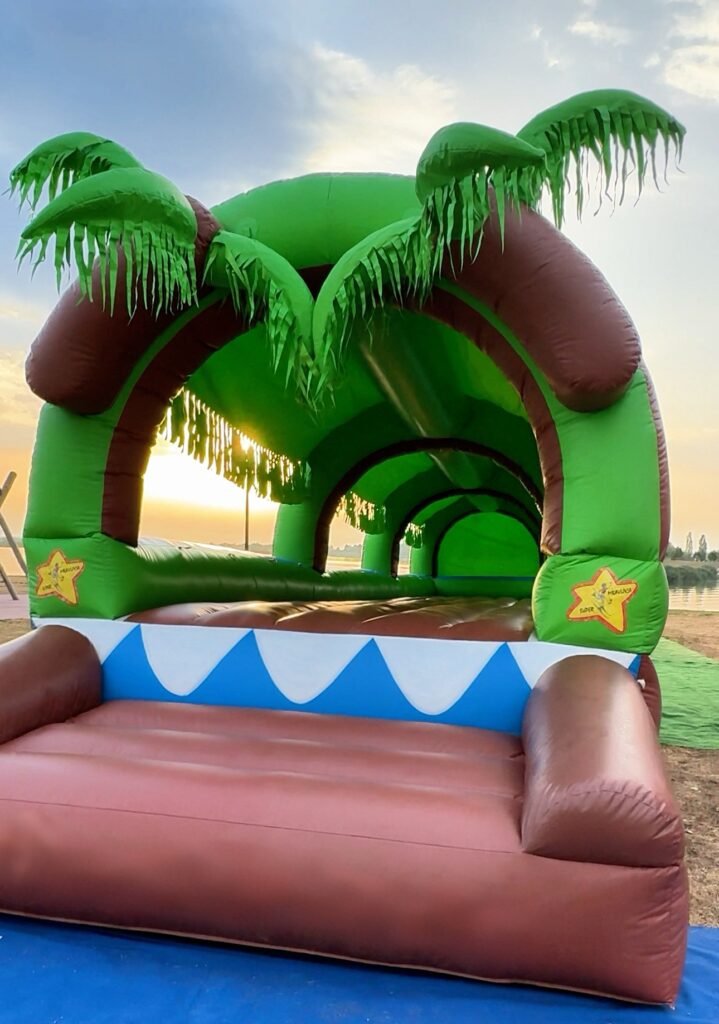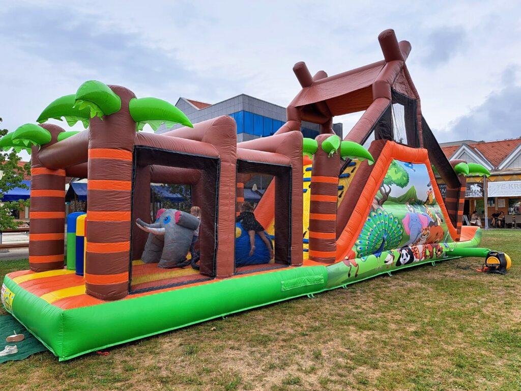 Impresivni napihljivi vodni poligon z džungelsko tematiko je prava atrakcija za vroče poletne dni. Z valovitimi drsnimi površinami, ovirami in tropsko zasnovo prinaša popolno kombinacijo gibanja, osvežitve in smeha. Primeren je za večje dogodke, kjer želimo otrokom ponuditi nekaj res posebnega.